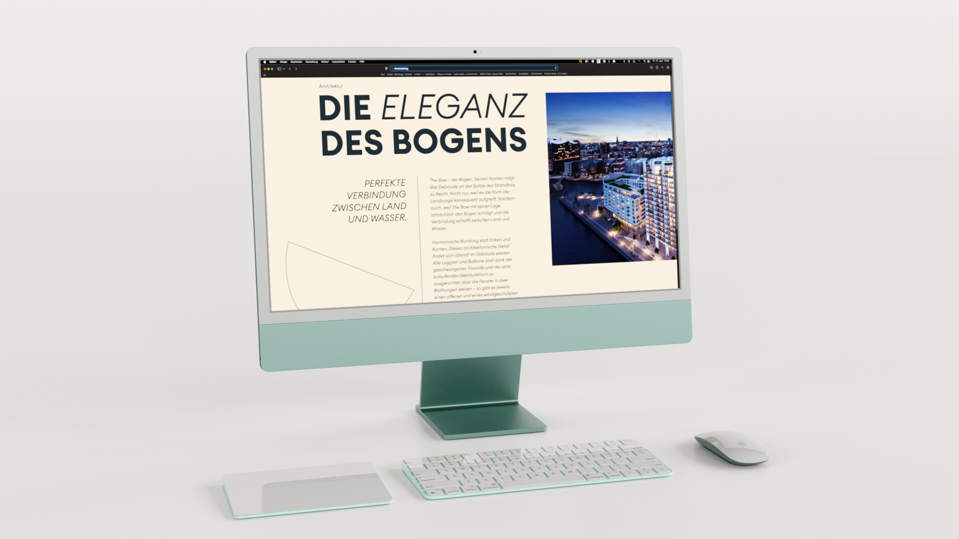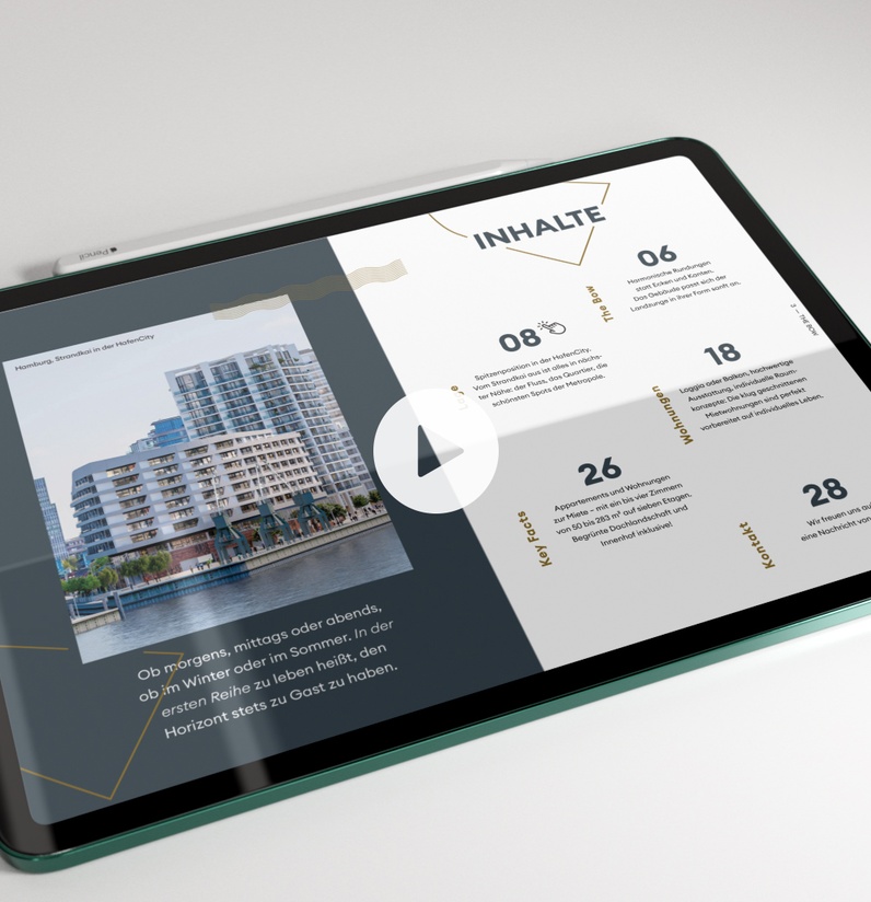 Exklusive Immobilien verlangen nach exklusiver Inszenierung und aufmerksamkeitsstarkes, elegantes Marketing. Für DC DEVELOPMENT entwickelten wir die internetgestützten Vertriebsmitel, das Design und die Namensgebung für diese Ausnahmeimmobilie direkt am Wasser. In Hamburg.