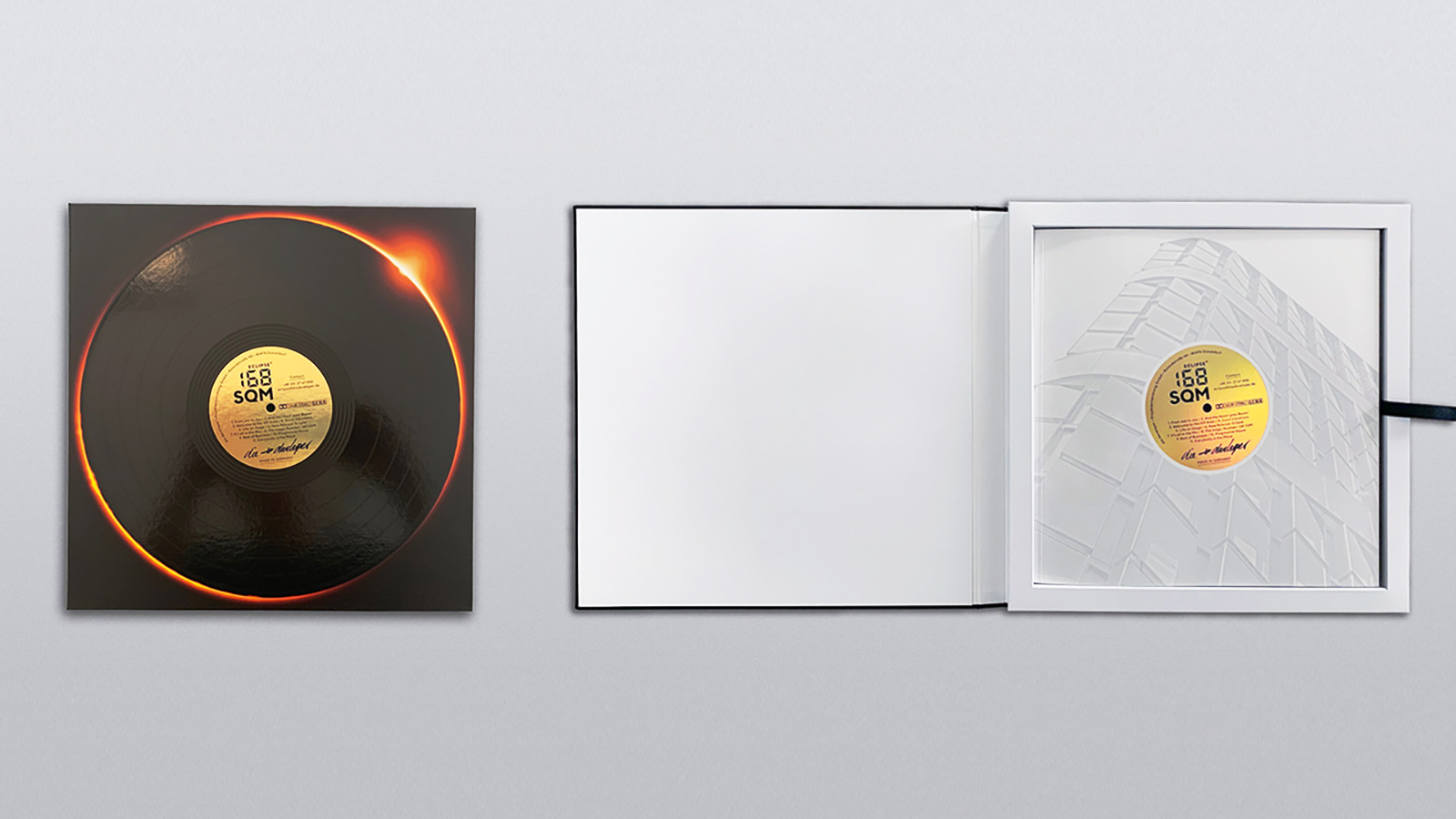 Der perfekte Büro-Mix wird Empfängern der Box entsprechend der Marketing-Story präsentiert: Die Box, in der sich das Exposé befindet, trägt eine Relief-Lackierung, die die Rillen eine Schallplatte imitiert.